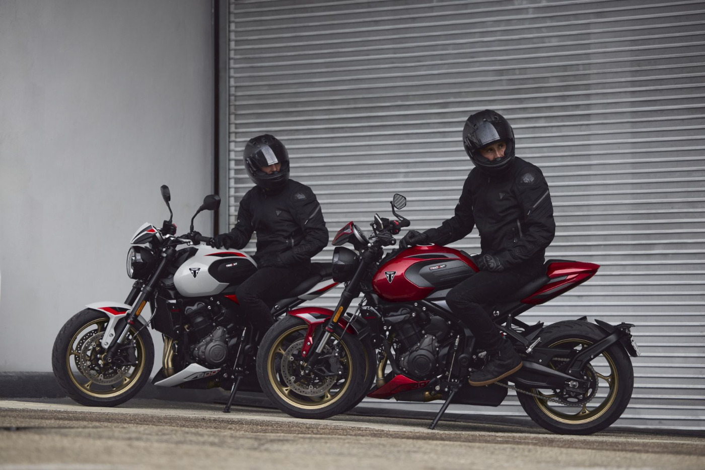 Die Trident 800 wurde für puren Fahrspaß entwickelt und verfügt über ein leichtes Chassis und ein hochwertiges, einstellbares Showa-Fahrwerk, die für ein dynamisches Fahrerlebnis, intuitive Agilität und souveräne Kontrolle sorgen. Der breite Lenker, der kompakte Rahmen und die sportliche Sitzposition machen sie zu einem Motorrad, das unmittelbar auf jede Lenkbewegung reagiert, Kurven mühelos meistert und auch bei hohen Geschwindigkeiten stabil bleibt. Mit einem Gewicht von nur 198 kg vollgetankt und griffigen Michelin-Reifen ist sie leicht und jederzeit bereit, Ihnen ein Lächeln ins Gesicht zu zaubern.